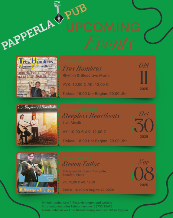 09456 Annaberg – B.   Tel. 03733 25693   www.papperla-pub.de
